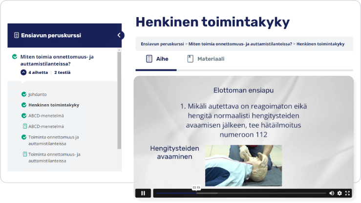Saat yrityksellesi kรคyttรถoikeuden kaikkiin virallisiin ja yleisimpiin ensiapukursseihin โ€” ilman erillisiรค koulutuspรคiviรค tai tilausrumbaa.